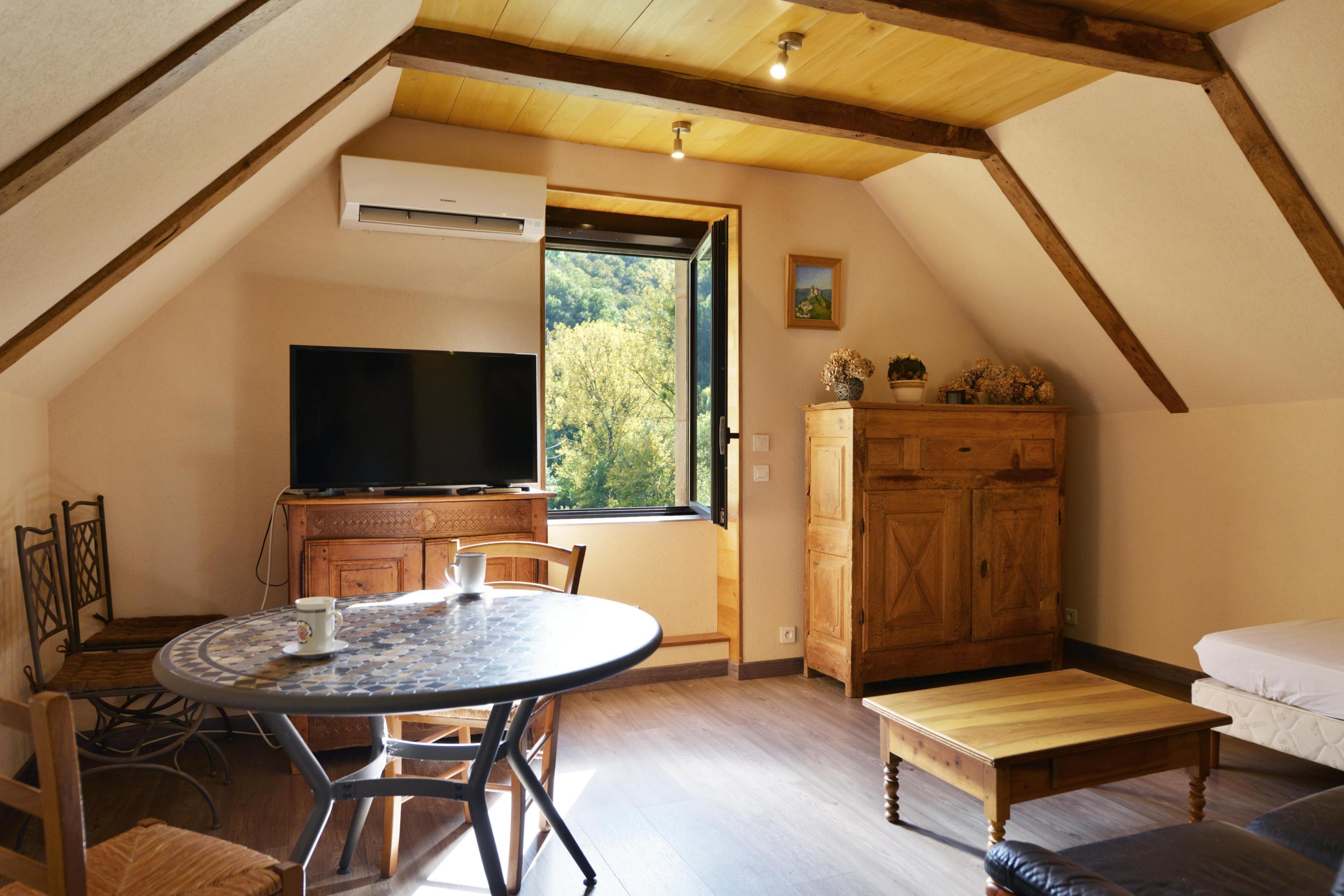 Invitez-vous dans ce gite niché dans la verdure avec vue sur le clocher de la cathédrale de Rodez. Il sera le point de départ idéal pour vos balades découvertes (promenade de Layoule longeant l'Aveyron, sur place), balades sportives (lacs de Pont de Salars et Pareloup, plages aménagées, pêche, voile), Montagne: Aubrac (randonnée, ski), balades culturelles (Soulages, Conques, beaux villages: Salles la Source, Marcillac, Bozouls, Espalion, Sauveterre, Belcastel, Bournazel etc...), balades gastronomiques (aligot, tripoux, gâteau à la broche, fouaces, soleil, farcous, vin de Marcillac, fromage de Roquefort et de Laguiole...).